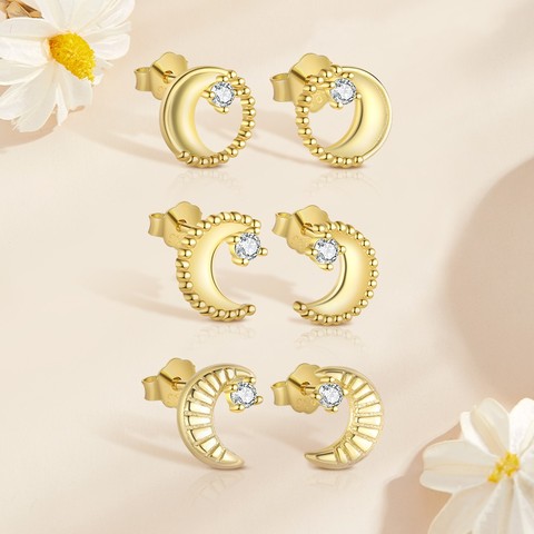 S925スターリングシルバーフレンチヴィンテージスターとムーンラグジュアリー18K金メッキスタッドイヤリング