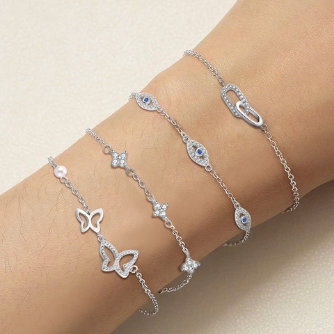 925 браслет из стерлингового серебра «глаз дьявола» с четырехлистным клевером и бабочкой роскошный дизайн браслет 5А с цирконием регулируемый браслет