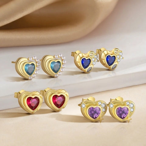 ต่างหูสตั๊ดรูปหัวใจเพทายสีเงินของผู้หญิงต่างหูแฟชั่นสไตล์หวานและเท่ขายส่งตามสั่ง