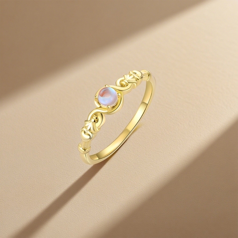 แหวนมูนสโตนรูปหัวใจสไตล์พระราชวังวินเทจทำจากเงินสเตอร์ลิงสี S925ออกแบบได้ตามต้องการ