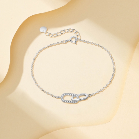 สร้อยข้อมือแหวนคู่รูปวงรีพร้อมเซอร์โคเนียสำหรับผู้หญิงปรับ S925เงินสเตอร์ลิงทันสมัย
